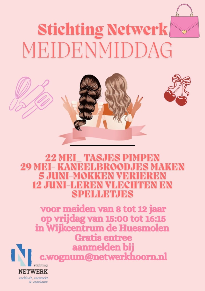 Hierbij de flyer voor de meidenmiddag die na de meivakantie start.